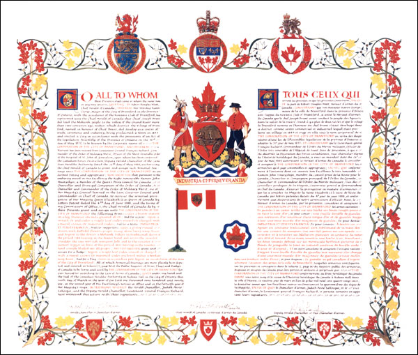 Additional InformationCreator(s)Original concept of the Corporation of the City of Brantford (Arms), and of Robert D. Watt, Chief Herald of Canada (Flag and Badge), assisted the heralds of the Canadian Heraldic Authority. PainterLinda Nicholson CalligrapherJudith Bainbridge Recipient TypeCivil Institution