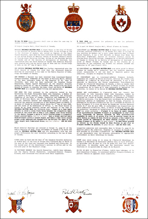 The contents of this Register are intended for research purposes only. The heraldic emblems found in the Register may not be reproduced in any form or in any media without the written consent of the Canadian Heraldic Authority and/or the recipient.