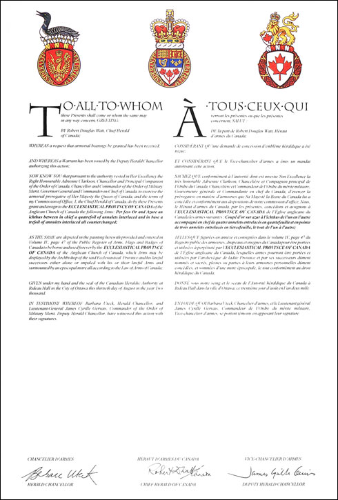 Additional InformationCreator(s)Original concept of Peter Hannen, assisted by the heralds of the Canadian Heraldic Authority. PainterRobert Grey CalligrapherSuzzann Wright Recipient TypeCivil Institution