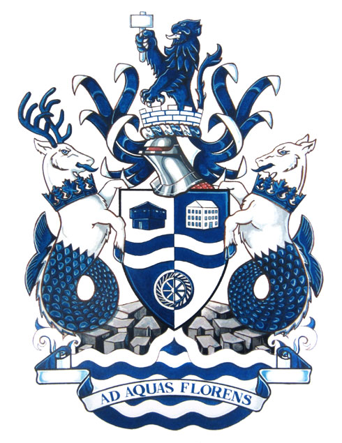 SupportersBlazonOn two outcrops of limestone rocks proper rising above waters barry wavy Argent and Azure dexter a marine stag Argent over Azure attired and gorged with a Loyalist civil coronet also Azure sinister a marine doe similarly coloured and gorged; SymbolismThe deer/fish supporters represent both the animals of the land and the creatures of the water, which are so abundant in and around the village. They also symbolize the men and women pioneers who helped build the community. The coronets represent the United Empire Loyalists who were some of the earliest pioneers to settle in the area. The outcrops of fractured limestone form the foundation of the village. The wavy lines represent the surrounding water which the families depend on for generating power, food and transportation. |