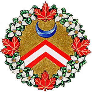 CrestBlazonA griffin statant Gules gorged with maple leaves Or and trillium flowers Argent seeded Or holding in its dexter forepaw a maple leaf Or; |