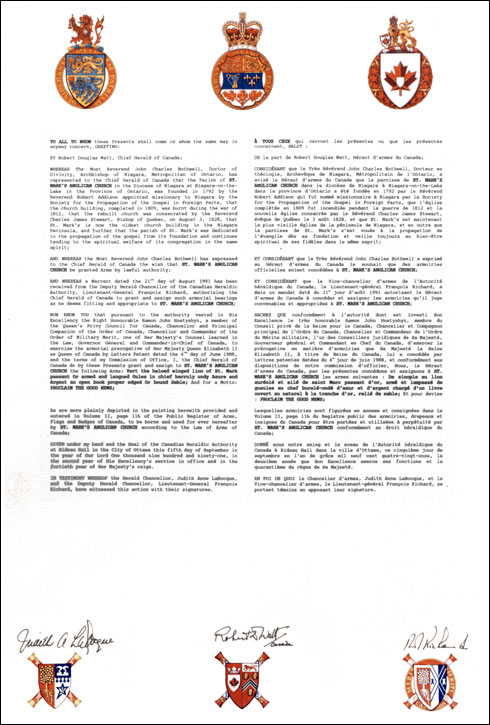 Additional InformationCreator(s)Original concept of Gordon Macpherson and Ralph Spence, assisted by the heralds of the Canadian Heraldic Authority. PainterGordon Macpherson CalligrapherJohn Whitehead Recipient TypeCivil Institution