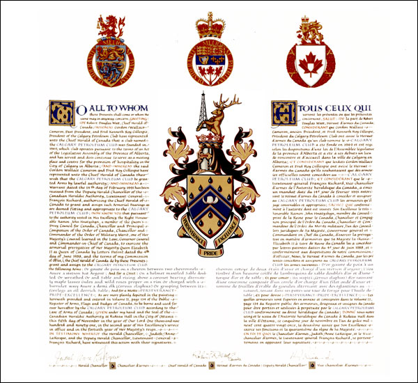 Additional InformationCreator(s)Original concept of Robert D. Watt, Chief Herald of Canada, assisted by the heralds of the Canadian Heraldic Authority. PainterAnatol Kozlowski CalligrapherJudith Bainbridge Recipient TypeCivil Institution
