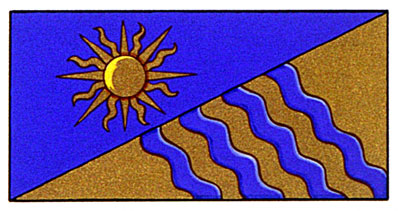 Arms of The Corporation of the City of PentictonBlazonPer bend sinister Azure and Or in dexter chief a sun in splendour and in sinister base four bendlets wavy counterchanged; SymbolismThe shield symbolizes the city’s beautiful setting and fine climate, with the gold sun shining in the sky and across the lakes to create sparkling water beside the gold sands of the beaches. |