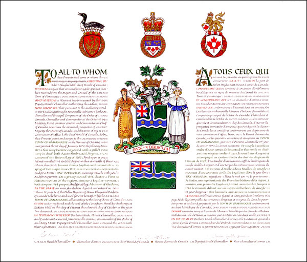 Additional InformationCreator(s)Original concept of John Matheson and Bruce Patterson, Saguenay Herald, assisted by the Heralds of the Canadian Heraldic Authority PainterGordon Macpherson CalligrapherSuzzann Wright Recipient TypeCivil Institution