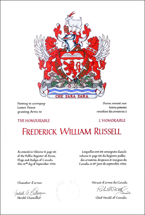Additional InformationCreator(s)Original concept of Robert D. Watt, Chief Herald of Canada, assisted by the heralds of the Canadian Heraldic Authority. PainterDebra Parker CalligrapherSuzzann Wright Recipient TypeIndividual Special DesignationLieutenant Governor |