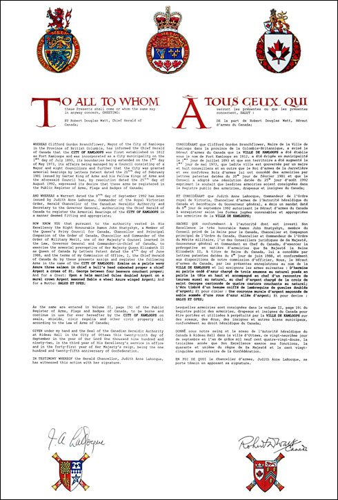 The contents of this Register are intended for research purposes only. The heraldic emblems found in the Register may not be reproduced in any form or in any media without the written consent of the Canadian Heraldic Authority and/or the recipient.