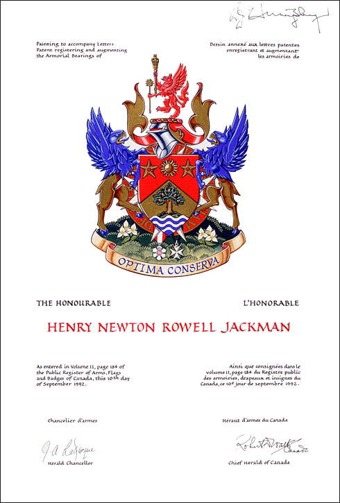 Additional InformationCreator(s)Original concept of Robert D. Watt, Chief Herald of Canada, assisted by the heralds of the Canadian Heraldic Authority. PainterLinda Nicholson CalligrapherJudith Bainbridge Recipient TypeIndividual Special DesignationLieutenant Governor |
