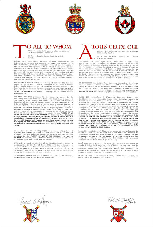 Additional InformationCreator(s)Original concept of Robert D. Watt, Chief Herald of Canada, assisted by the heralds of the Canadian Heraldic Authority. PainterLinda Nicholson CalligrapherSuzzann Wright Recipient TypeCivil Institution
