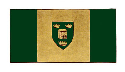 SupportersBlazonOn a grassy mound rising above barry wavy Argent and Azure two lions Or semé of Loyalist Civil Coronets Vert that on the dexter with the dexter foreleg resting on a garb Or that on the sinister with the sinister foreleg resting on an oak sapling Or; |
