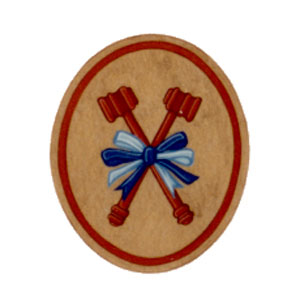 CrestBlazonRising above three bars wavy Argent Azure and Argent a grassy mound strewn with maple seeds Or and growing thereon a maple tree Or between two maple saplings Gules; SymbolismThe waves, grass and trees represent Canada and the stewardship of its riches. The central tree refers to the community of women across Canada, and the saplings represent new development of thought. The maple seeds symbolize birth and change. |