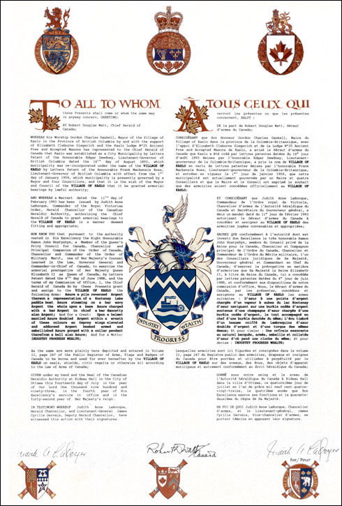 Additional InformationCreator(s)Original concept of Charles Maier, Athabaska Herald, assisted by the heralds of the Canadian Heraldic Authority. PainterDebra Parker CalligrapherNot applicable Recipient TypeCivil Institution