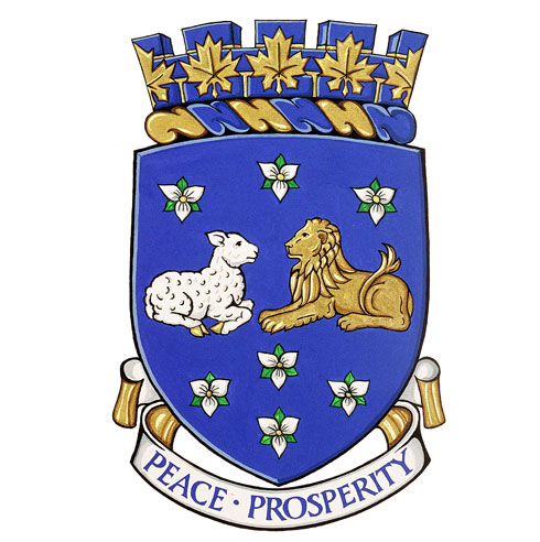 CrestBlazonA mural crown Azure masoned and and charged at each merlon with a maple leaf Or; |
