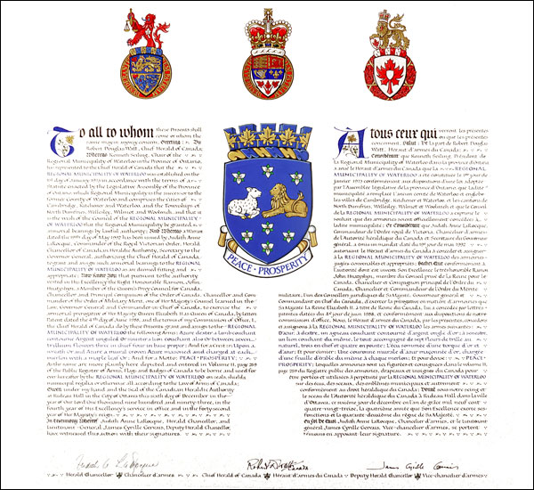 Additional InformationCreator(s)Original concept of Charles Maier, Athabaska Herald, assisted by the heralds of the Canadian Heraldic Authority. PainterJoan Bouwmeester CalligrapherSuzzann Wright Recipient TypeCivil Institution