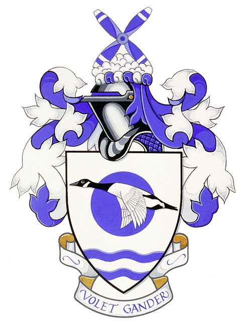 MottoBlazonVOLET GANDER. This Latin phrase means "May Gander fly"; SymbolismThis Latin phrase means “Let Gander fly.” It refers to the town’s link with aviation and invokes the idea of progress and success. |