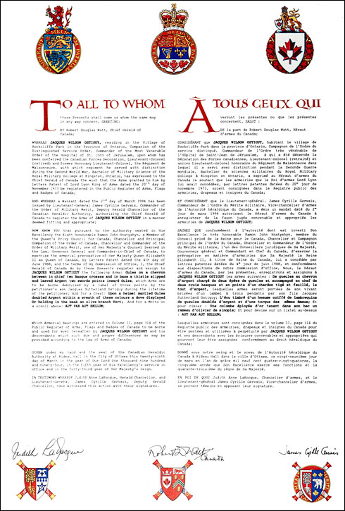 Grant of differenced Arms to Jacques Sutherland Ostiguy