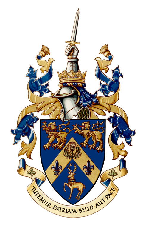 CrestBlazonRising out of a Loyalist Civil Coronet Or a dexter cubit arm in armour gauntletted holding aloft a sword Argent hilt and pommel Or; |