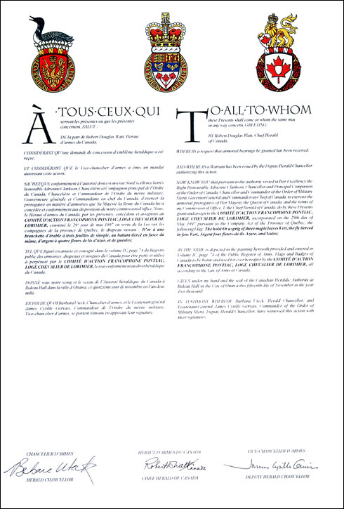 Additional InformationCreator(s)Original concept of Sebastien Beaudoin, assisted by the Heralds of the Canadian Heraldic Authority PainterRobert Grey CalligrapherJudith Bainbridge Recipient TypeCivil Institution