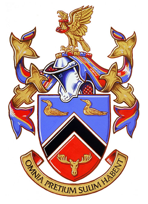 MottoBlazonOMNIA PRETIUM SUUM HABENT. This Latin phrase means "Everything has its price". |