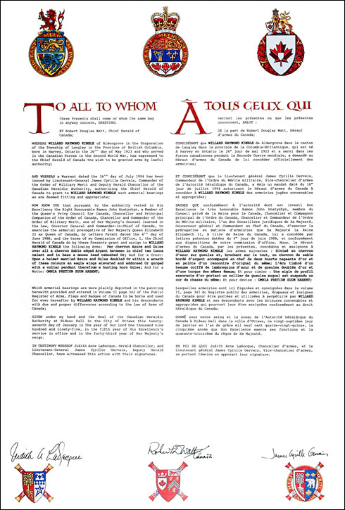 Additional InformationCreator(s)Original concept of Graham Anderson, assisted by the heralds of the Canadian Heraldic Authority. PainterAlastair Priestly CalligrapherNancy Ellis Recipient TypeIndividual |