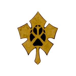 CrestBlazonA demi Arctic Wolf proper the sinister forepaw resting on the wreath the dexter forepaw holding a staff Or flying therefrom a streamer Sable in the hoist a maple leaf Or charged with the paw print of a wolf Sable; |