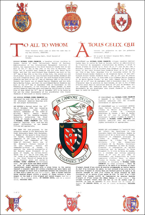 The contents of this Register are intended for research purposes only. The heraldic emblems found in the Register may not be reproduced in any form or in any media without the written consent of the Canadian Heraldic Authority and/or the recipient.