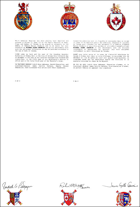 Additional InformationCreator(s)Original concept of Robert D. Watt, Chief Herald of Canada, assisted by the heralds of the Canadian Heraldic Authority. PainterDebra Parker CalligrapherNot applicable Recipient TypeIndividual |