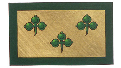 Arms of John Christian Thomas Wendell Matthew von BenderBlazonOr three trefoils within a bordure Vert; SymbolismThe design reflects the ancient arms of the von Bender family, originally from Baden-Württemberg in southern Germany. |