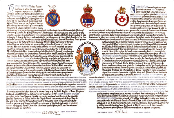 Other InformationThe recipient’s emblems were subsequently recorded in the name of the Canadian Museum of History in the Public Register of Arms, Flags and Badges of Canada, Vol. VI, page 714, 20 April 2017. |