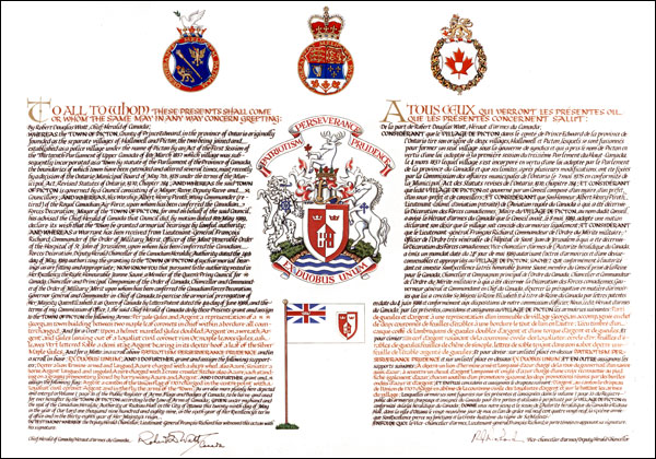 Additional InformationCreator(s)Original concept of Robert D. Watt, Chief Herald of Canada, assisted by the heralds of the Canadian Heraldic Authority. PainterDonald Hallman CalligrapherJohn Whitehead Recipient TypeCivil Institution