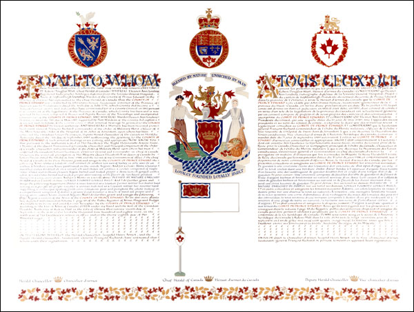 Additional InformationCreator(s)Original concept of Robert D. Watt, Chief Herald of Canada, assisted by the heralds of the Canadian Heraldic Authority. PainterJoan Bouwmeester CalligrapherJoan Bouwmeester Recipient TypeCivil Institution