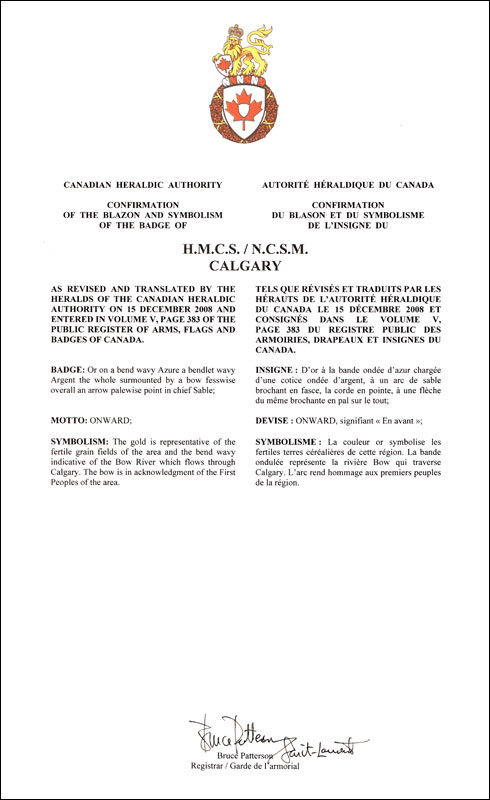 The contents of this Register are intended for research purposes only. The heraldic emblems found in the Register may not be reproduced in any form or in any media without the written consent of the Canadian Heraldic Authority and/or the recipient.