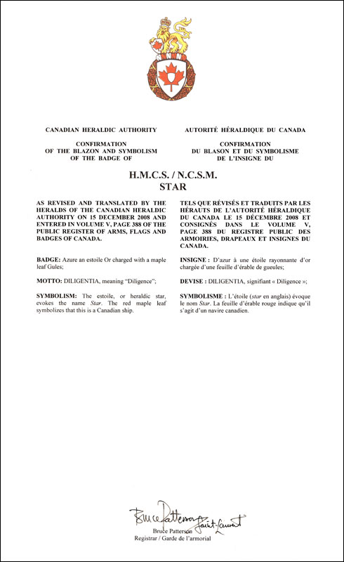 The contents of this Register are intended for research purposes only. The heraldic emblems found in the Register may not be reproduced in any form or in any media without the written consent of the Canadian Heraldic Authority and/or the recipient.