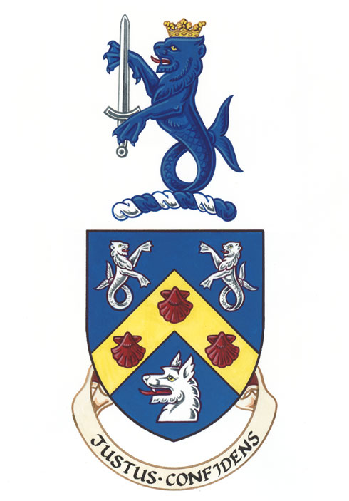 CrestBlazonA sealion Azure crowned with an ancient crown Or holding a sword Argent; SymbolismNot available. |