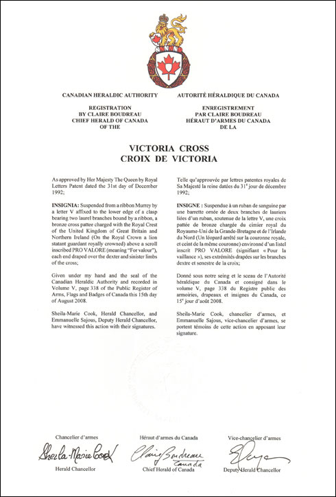 The contents of this Register are intended for research purposes only. The heraldic emblems found in the Register may not be reproduced in any form or in any media without the written consent of the Canadian Heraldic Authority and/or the recipient.