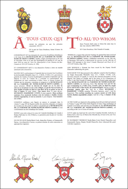 Additional InformationCreator(s)Original concept of Karine Constantineau, assisted by the heralds of the Canadian Heraldic Authority. PainterIlona Jurkiewicz CalligrapherShirley Mangione Recipient TypeCivil Institution