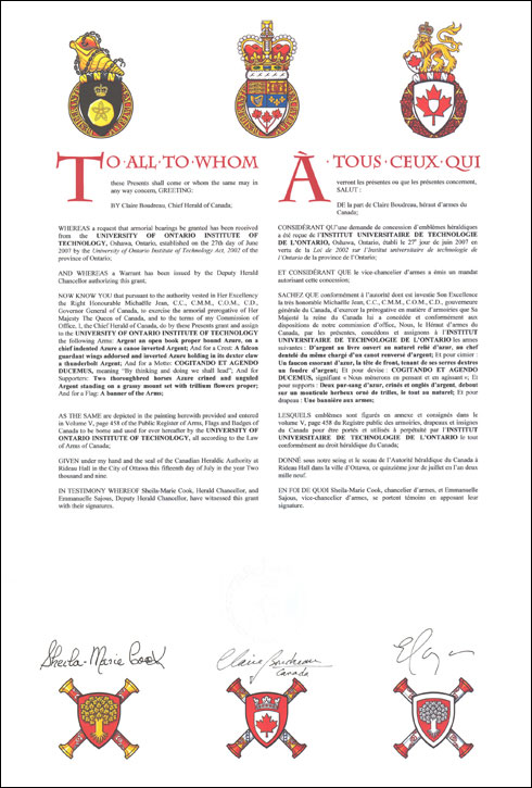 The contents of this Register are intended for research purposes only. The heraldic emblems found in the Register may not be reproduced in any form or in any media without the written consent of the Canadian Heraldic Authority and/or the recipient.