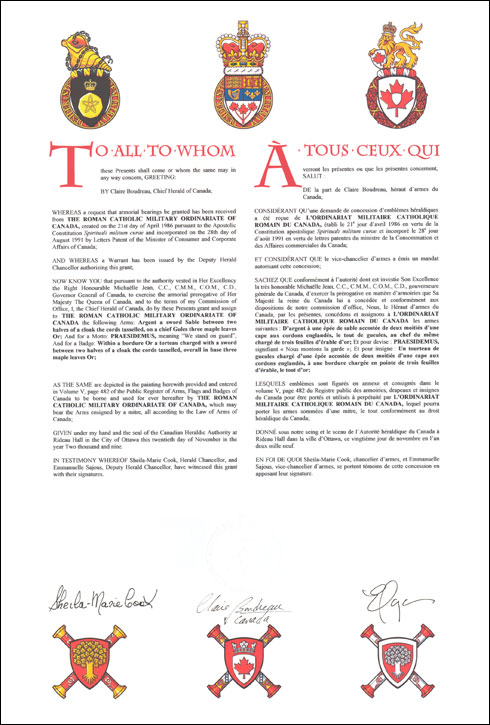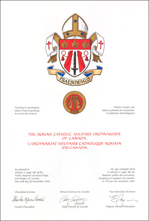 The contents of this Register are intended for research purposes only. The heraldic emblems found in the Register may not be reproduced in any form or in any media without the written consent of the Canadian Heraldic Authority and/or the recipient.