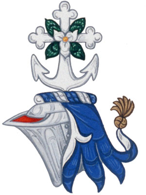Crest of Bruce Herbert Warren HoweBlazonA cross bottony conjoined to the flukes of an anchor Argent surmounted by four trillium leaves in saltire charged with a trillium flower proper; SymbolismNormally, Bishop Howe will place above his shield a mitre, the traditional hat of a bishop. His heirs will instead use the crest, usually placed on top of a helmet with mantling. The crest combines two of the important symbols from the arms, with the trillium cross in saltire to reflect the division line of the arms. |