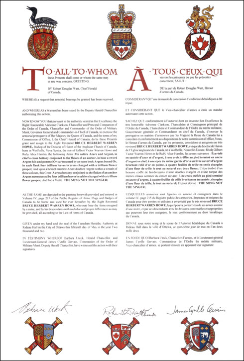 Additional InformationCreator(s)Original concept of David Bowyer, assisted by the Heralds of the Canadian Heraldic Authority PainterDavid Bowyer CalligrapherNancy Ellis Recipient TypeIndividual |