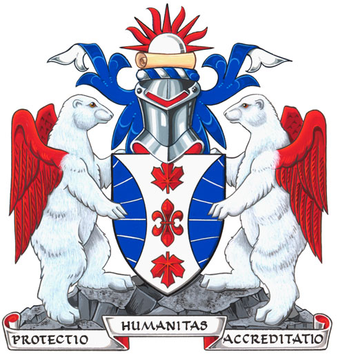 MottoBlazonPROTECTIO • HUMANITAS • ACCREDITATIO; SymbolismPROTECTIO • HUMANITAS • ACCREDITATIO means “Protection, humanity, accreditation” and expresses the ideals and purpose of the Society. |