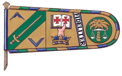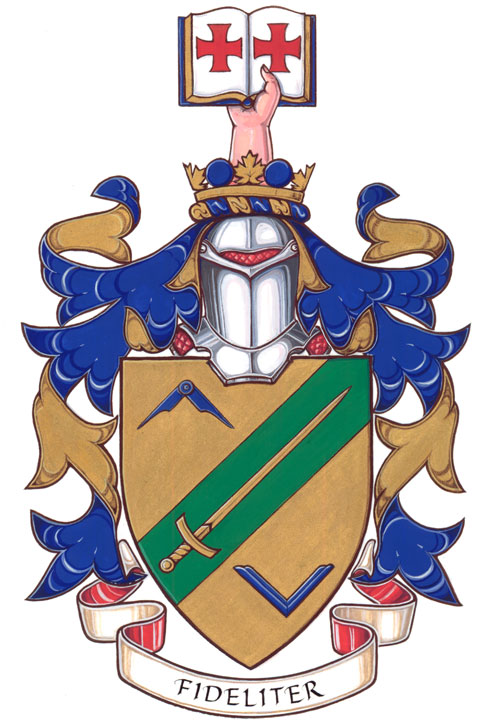 Arms of Warren George RalphBlazonOr on a bend sinister Vert between in chief a pair of compasses and in base a mason’s square Azure, a sword Or; SymbolismThe green diagonal stripe refers to the sash of a Justice of the Peace of the Ontario Court of Justice, and thus to Justice Ralph’s service in this capacity. Green and gold are the colours of the province of Ontario, where Justice Ralph was born. The sword is a symbol of justice and also refers to his service as a Captain in the Canadian Forces. The square and compasses are Masonic symbols and refer to Justice Ralph’s involvement in Freemasonry. |
