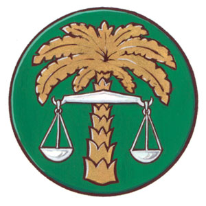 Badge of Warren George RalphBlazonOn a pomme a palm tree Or surmounted by a balance Argent; SymbolismThe palm tree alludes to a Wingate crest and Justice Ralph’s descent from this family, among whose members were General Sir Reginald Wingate and Major-General Orde Wingate. It also refers to his family’s second home in southern California. The balance is a symbol of justice and furthers the idea of his position as a Justice of the Peace. |
