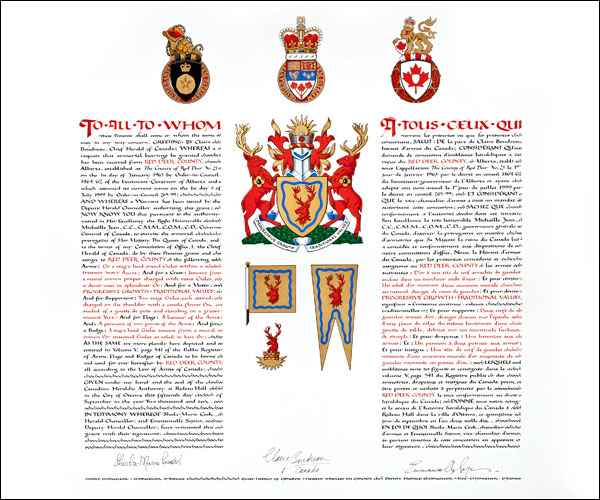 The contents of this Register are intended for research purposes only. The heraldic emblems found in the Register may not be reproduced in any form or in any media without the written consent of the Canadian Heraldic Authority and/or the recipient.