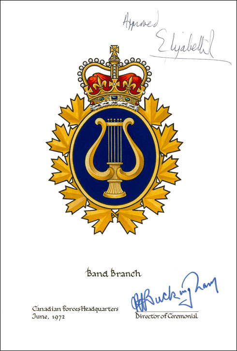 Badge of the Music BranchBlazonAzure a five-stringed lyre Or; SymbolismThe lyre is an ancient musical instrument that symbolizes the art of music in its entirety. It has a long association with military bands, having been used as an emblem of the Royal Artillery Drums and Fifes since at least 1854. |