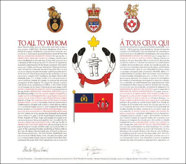 Additional InformationCreator(s)Original concept of Bruce Patterson, Saint-Laurent Herald, assisted by the heralds of the Canadian Heraldic Authority. PainterBarbara Saville CalligrapherShirley Mangione Recipient TypeCivil Institution