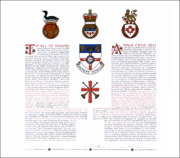 Additional InformationCreator(s)Original concept of David Bowyer, assisted by the Heralds of the Canadian Heraldic Authority PainterDavid Bowyer CalligrapherJudith Bainbridge Recipient TypeCivil Institution