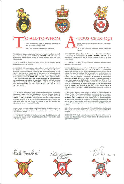 Additional InformationCreator(s)Original concept of Gregory Cameron, assisted by the heralds of the Canadian Heraldic Authority. PainterGordon Macpherson CalligrapherShirley Mangione Recipient TypeIndividual |