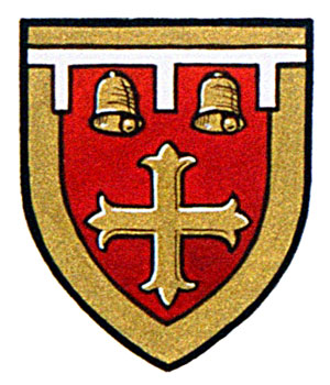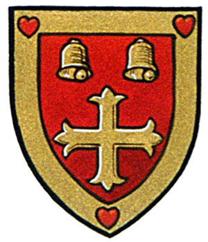 Arms of Godfrey McCance GransdenBlazonGules a cross patonce in chief two bells, all within a bordure Or; SymbolismThe shield is based on the arms granted to a Gransden in 1612. The bells appear in the arms of the city of Belfast and honour Dr. Gransden’s Irish heritage. The gold border is a mark of difference since these arms were granted in memory of Dr. Gransden’s father, Sir Robert Gransden. |