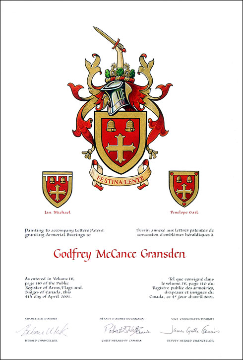 Grant of Arms, with differences to Ian Michael Gransden and Penelope Gail Gransden